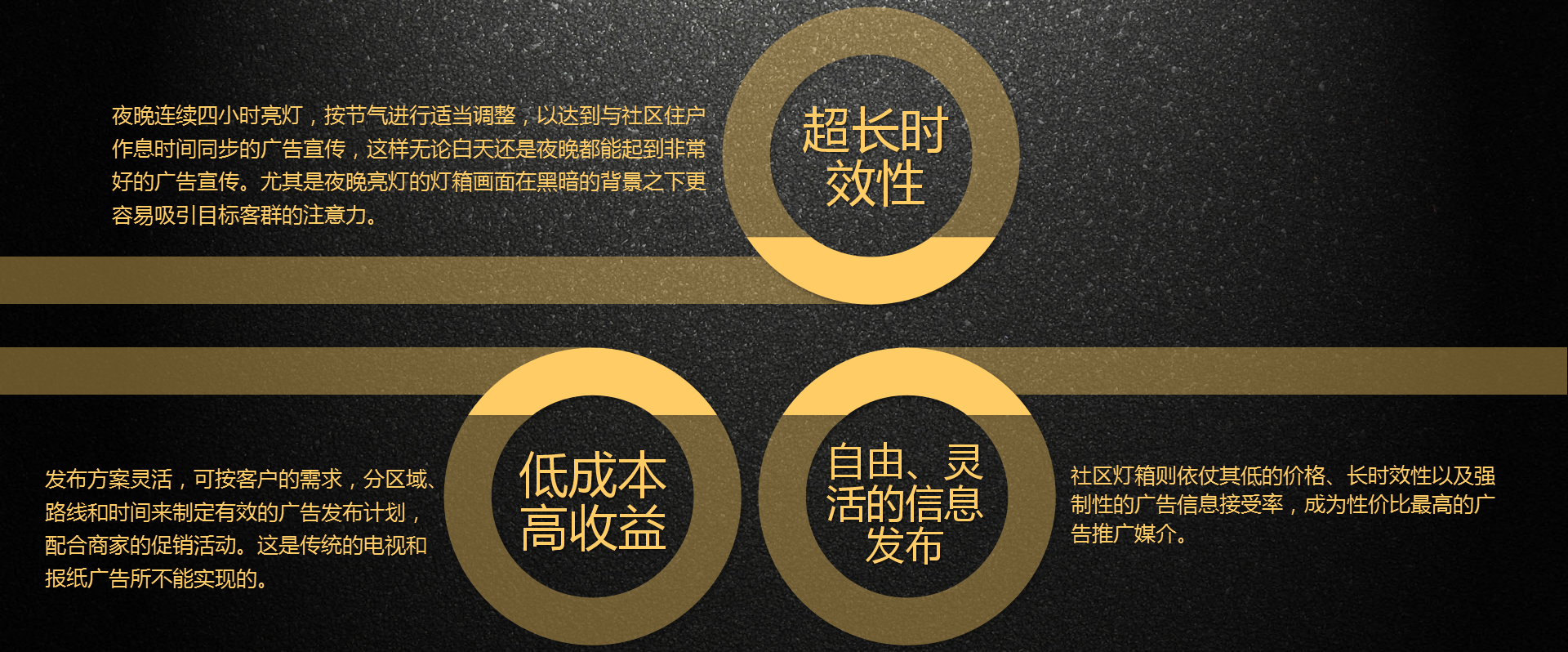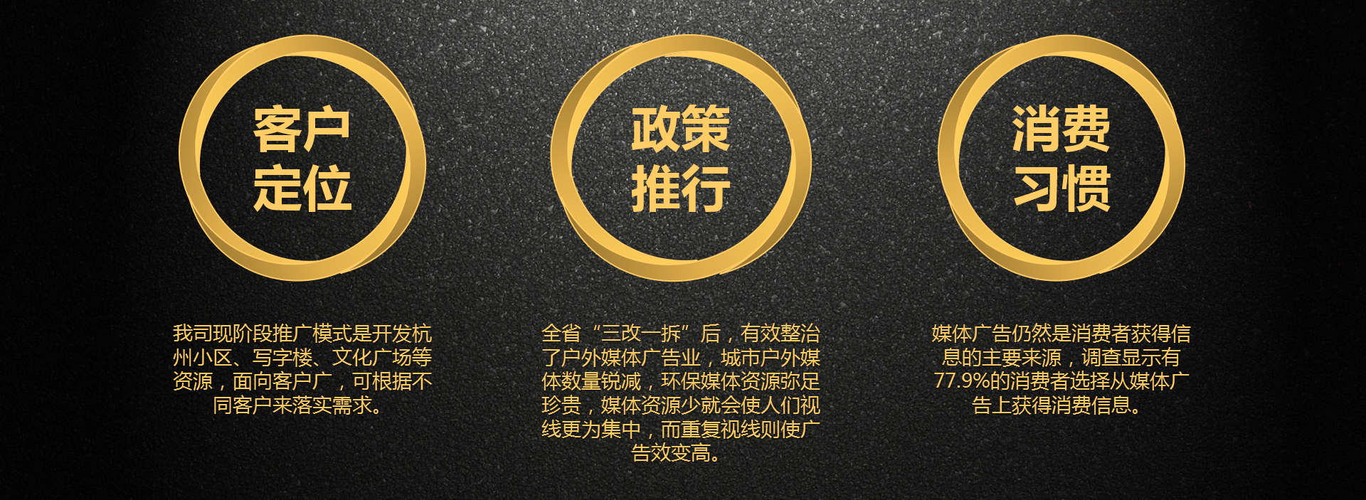 公司秉承“把服务意识根植于中心”的管理理念,在公司内部推行管理就是服务,上级为下级做好服务,创造和谐平等人性化的工作环境。在外部推行只有把合作服务好才能共同发展的理念,实现更好的占领市场,旨在让所有的合作者都能蓬勃发展。同时公司奉行“改进永无止境”的产品理念,在产品的生产研发上精益求精,让公司产品一直处于行业前列。实现打造全国范围较广,布点较多,数量较大的户外环保智能媒体战略目的.......